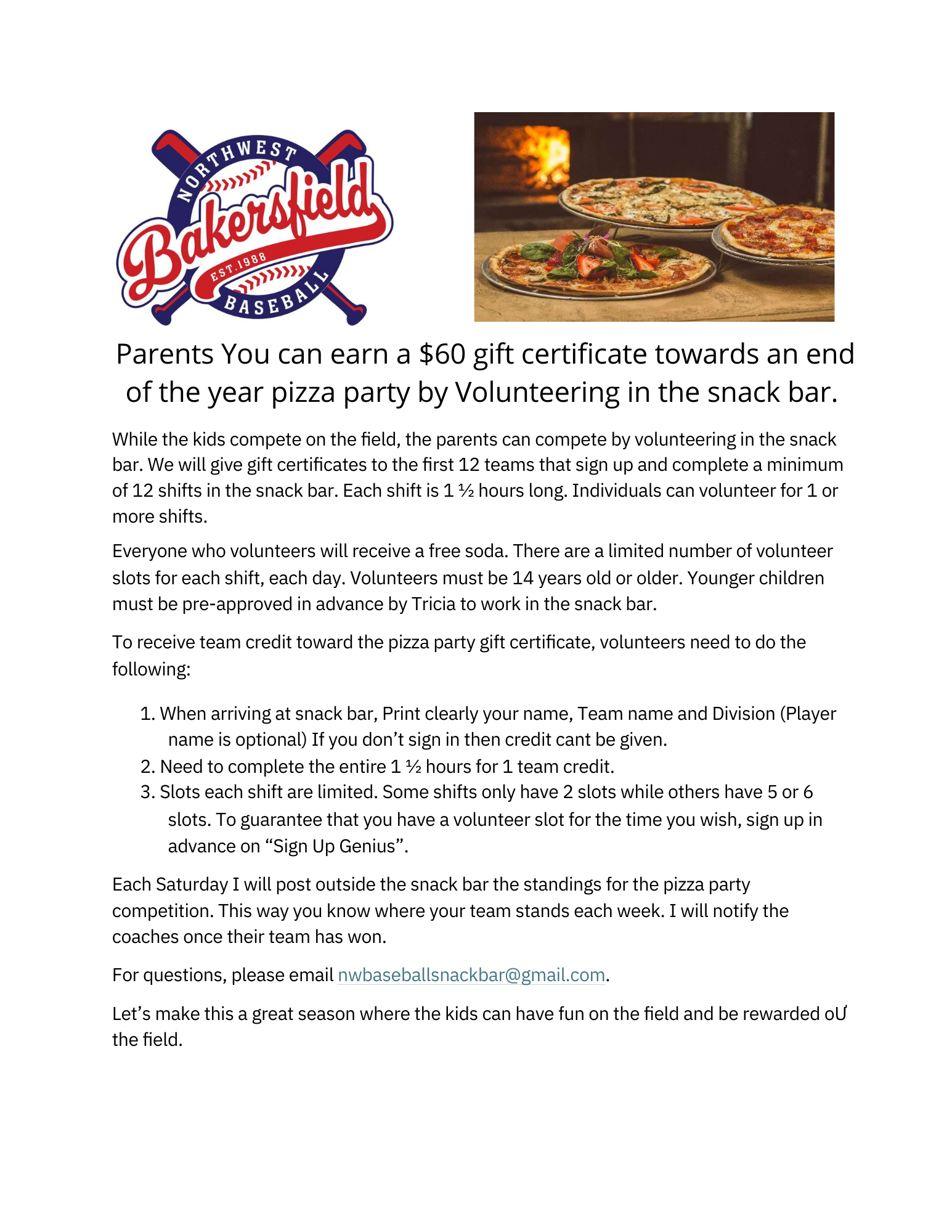Our snack bar is a big part of what keeps our baseball program running strong—but we can’t do it without the support of our amazing parents. Volunteering just a little of your time makes a huge difference!